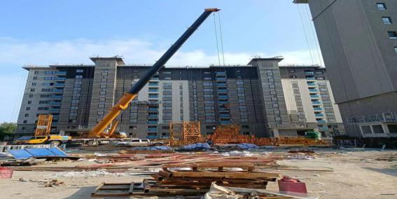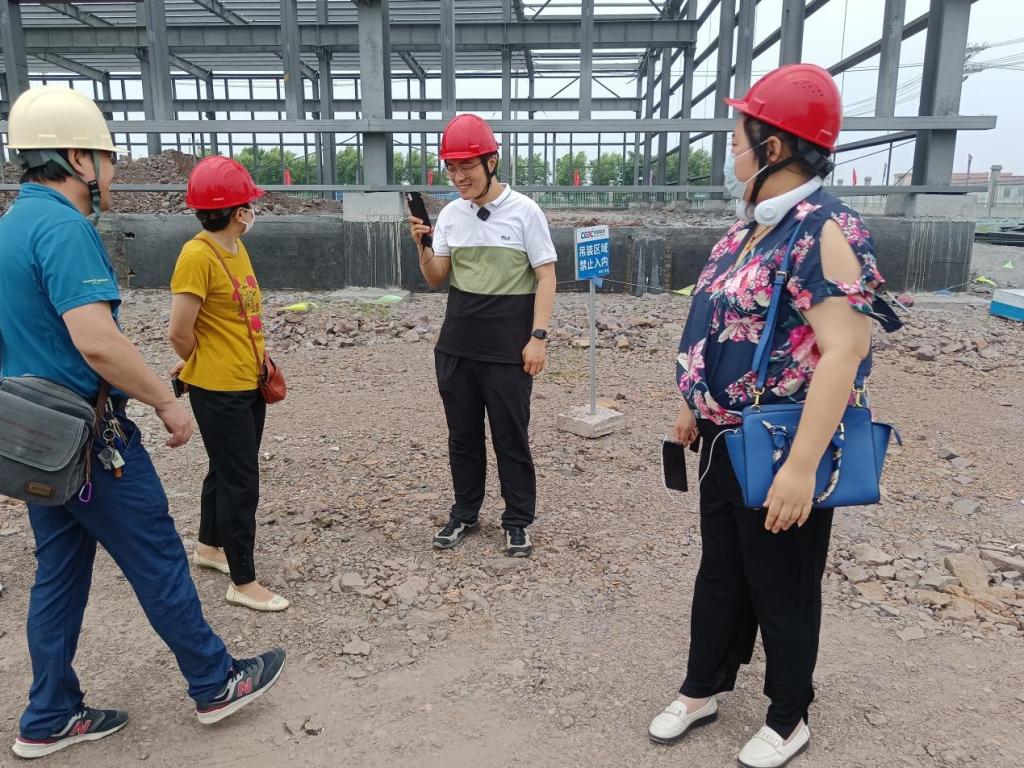 随后,教师团队到达第二个目的地,铁科轨道兴城基地新建工程的钢结构厂房。通过工作人员讲解可了解到,该钢结构厂房纵向跨度24m,共三跨,横向210m长,轴距7.5m。厂房大门为提升式,位于两个柱子之间。边跨屋顶设有十字撑,可以保证结构的空间整体、避免压杆侧向失稳,防止拉杆产生过大的振动、承担和传递水平荷载、保证结构安装时的稳定和方便。近年来国家也在推行民用建筑使用钢结构,钢结构的厂房以及民用建筑也是国家未来比较鼓励发展的一方面。