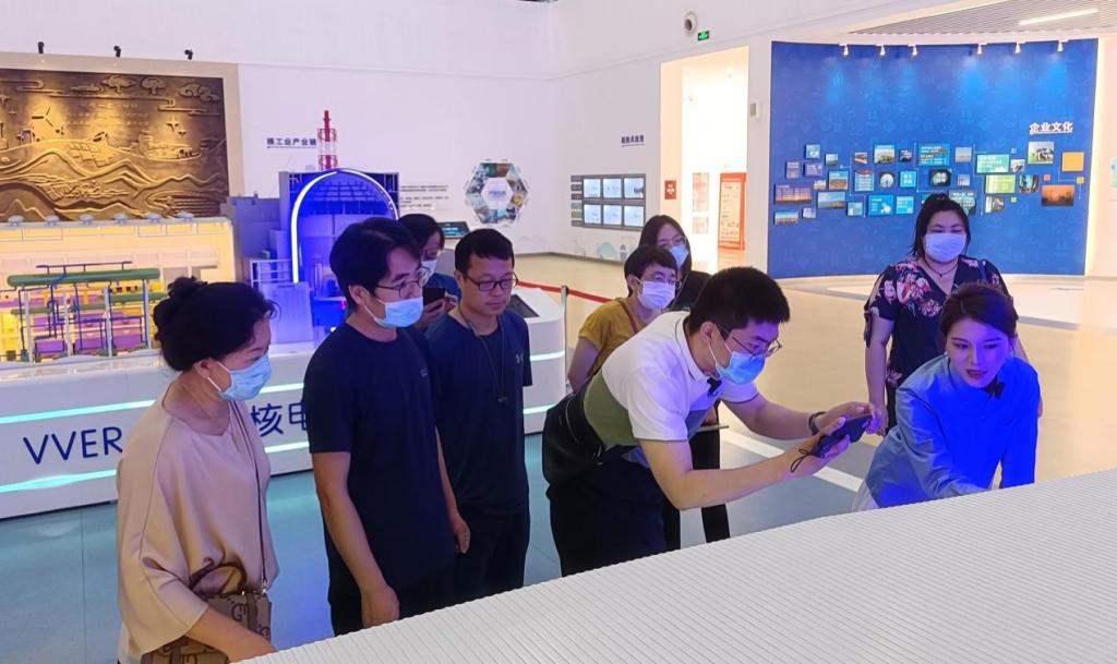 为了让学生更多了解我国核工业的发展史以及核电站搭建阶段的知识,教师团队首先到达的目的地是中核辽宁核电宣传展览中心。通过工作人员的介绍,学生了解到核能的基本知识以及我国核能的发展前景。徐大堡核电项目具有显著的环境、社会及经济效益。核电站从选址、设计、建造到调试、运行和退役,每个阶段都需要有严格遵守的质量保证大纲,每一个阶段的每项具体活动都有专门的质量保证程序。核电站还实行内部和外部的监查制度,监督检查质量保证大纲与程序的实施情况及是否起到应有的作用。