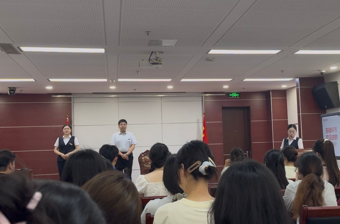 在银行负责人带领下,师生们实地探访了运营、信贷、风控、零售、对公等核心部门。各部门负责人详细介绍了业务流程及运作机制,使学生们对商业银行的架构、管理和运作逻辑获得了清晰、立体的认知。最后,银行资深员工为学生进行了专业的金融职场礼仪培训并通过情景模拟进行金融业务实操指导,有效提升了学生对银行业务的具象化理解和实际操作能力。