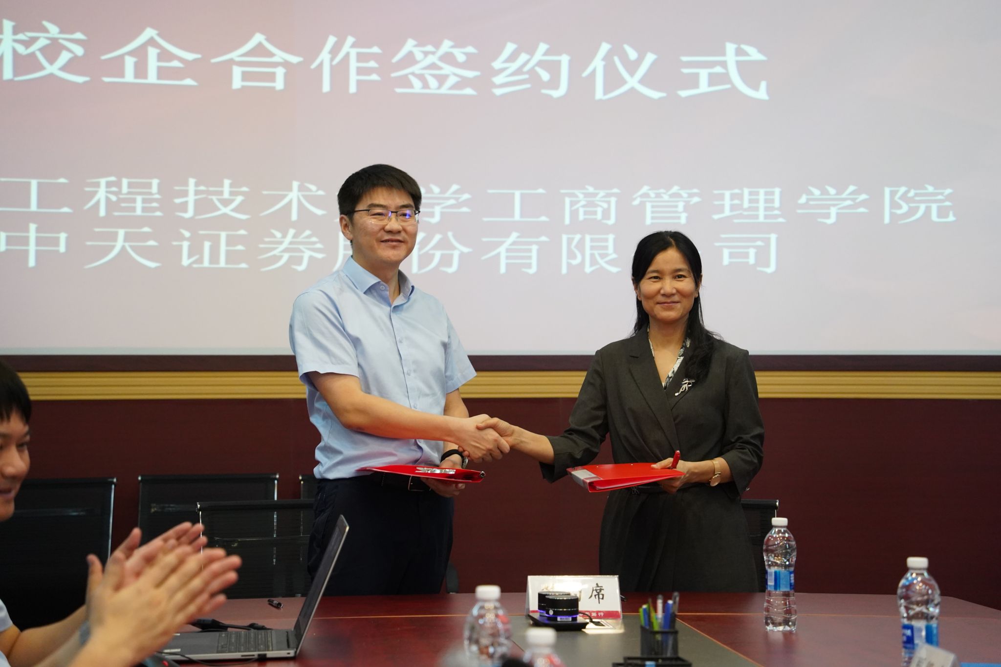 (通讯员 李伯华)2025年9月15日下午2:00,工商管理学院与中天证券股份有限公司校企合作签约仪式于耘慧楼215会议室圆满举行,双方正式达成战略合作,共同建立投资者教育基地与金融学人才联合培养基地,为我校金融学专业人才高质量协同培养注入新动能,开启了我校金融学科赋能社会发展新篇章。