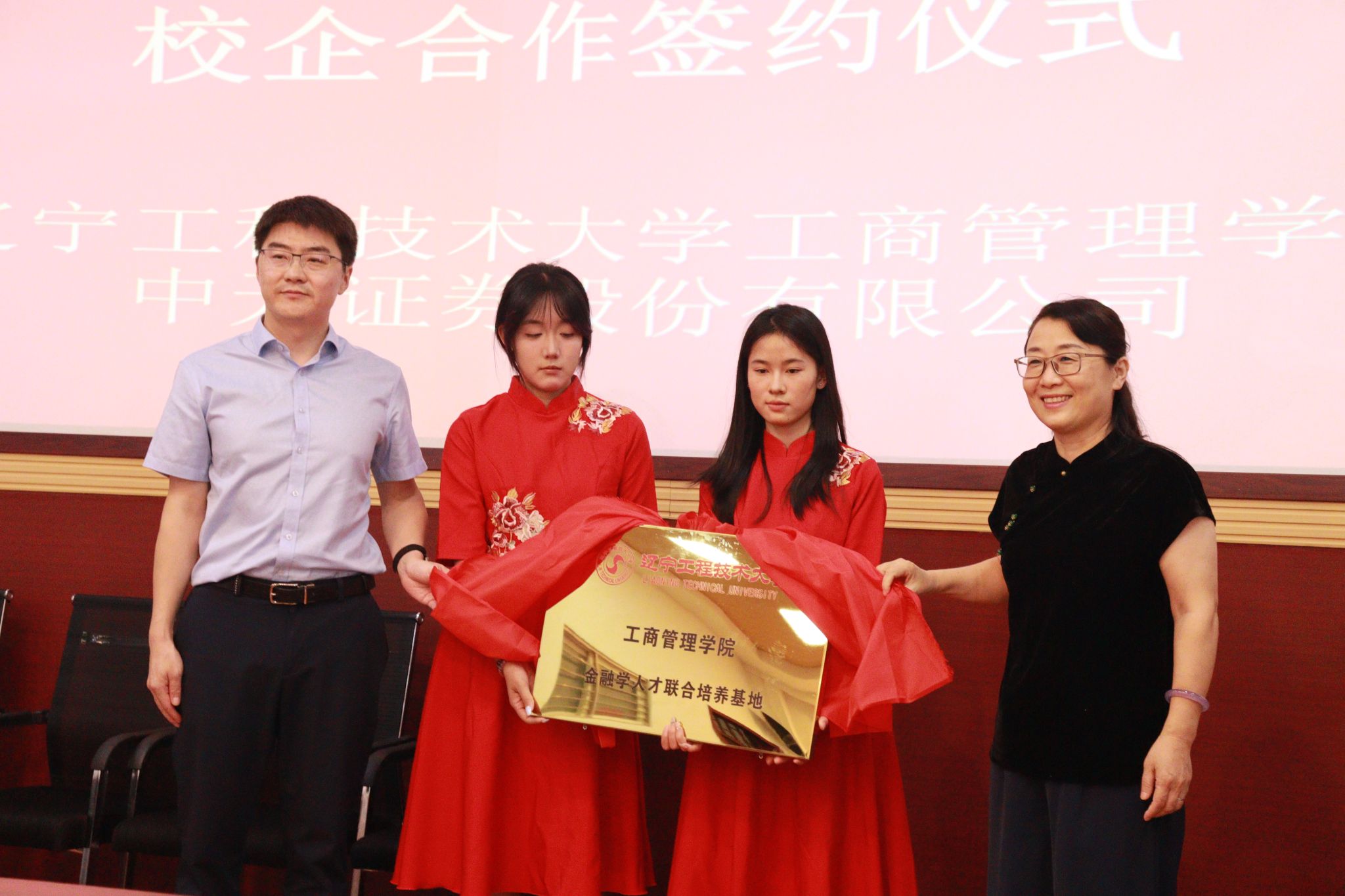 签约仪式由工商管理学院副院长、金融学专业负责人贾凯威主持,学院党委书记徐若虹、副院长(主持工作)李晓梅、党委副书记王健、副院长温廷新、副院长毛志勇、金融系系主任李伯华与中天证券经纪业务部总经理李祥、副总经理高扬、葫芦岛营业部总经理薛汝森等共同出席签约与揭牌仪式。金融系全体教师与部分本科、硕士、博士生代表列席了此次会议。此次合作聚焦于金融实务能力培养、金融素养提升与产学研资源整合对接,旨在构建产学研深度融合新机制,为学生提供从理论到实战的一体化培养平台,构建传播金融投资前沿动态新机制,打造契合行业需求的人才输送通道,培养具备创新能力和职业素养的高质量金融人才。