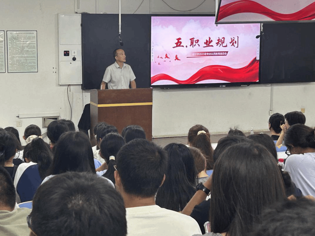 在指导环节,2025级各班班导师围绕“学业适应与目标设定”主题发言,针对新生可能面临的学习节奏调整、专业知识理解等问题提供解决方案。会议最后,周茂春主任以“会计专业人才的核心素养与职业规划”为题作总结分享,从行业政策变化、数字化转型对会计岗位的新要求出发,指导新生构建“专业知识+实践能力+职业素养”的三维成长体系,鼓励新生以长远视角规划学业,主动适应行业发展需求。