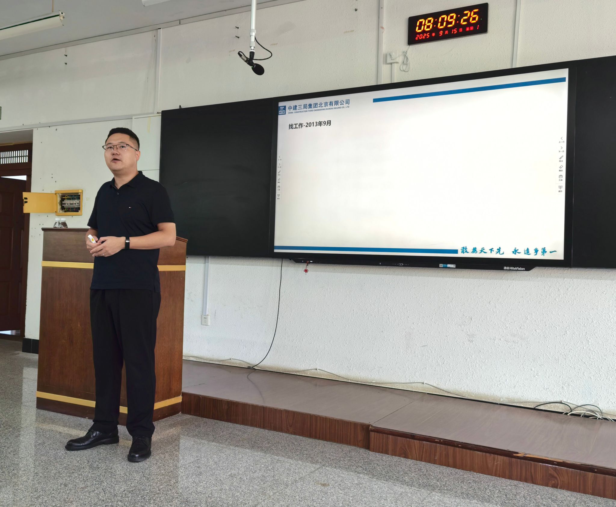 9月15日讲座的首位主讲人是10级工程管理专业优秀校友杜超,拥有11年行业经验,现任中建三局集团北京有限公司山东分公司副总经理,已成功拿到北京大学MEM(工程管理硕士)学位,是三局北京最年轻的分公司副总。杜超以自身职业时间线为脉络,讲述了2013年求职时主动赴北京参加中建三局宣讲会并成功签约的经历,强调“主动争取才有机会”;分享了入职初期在项目中艰苦奋斗、快速成长,凭借聚焦实际问题的汇报获公司转正考核第1的故事;也提及2016年面对工作压力的挫折经历,以及后续在亏损项目中突破自我的过程,鼓励学子“在挑战中成长”。