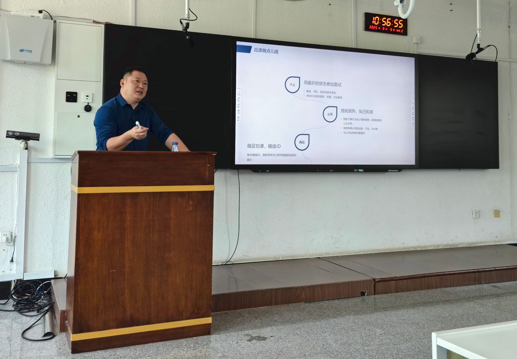 9月9日的讲座由2003级工程管理专业校友郭荣凯主讲。郭荣凯校友毕业18年,长期从事人力资源工作,现任富力集团东北区域公司人力资源总监,同时负责商业模块整体工作,曾任职于国家电网天津电力建设集团、华润集团等知名企业。他围绕“简历、面试、试用期”三大核心模块展开分享,强调简历需“一岗一份”,根据目标岗位调整内容,聚焦岗位相关经历,避免冗余信息与格式错误;面试前要充分了解企业,提前复盘经历应对高频问题,面试中保持清晰表达,把握双向选择机会;试用期需保持积极心态,多学多做,优先选择能积累经验的发展平台。此外,他建议工程管理专业毕业生若从事施工方向,可优先选择中建、中铁等大型央企,积累经验后再考虑转向开发企业。