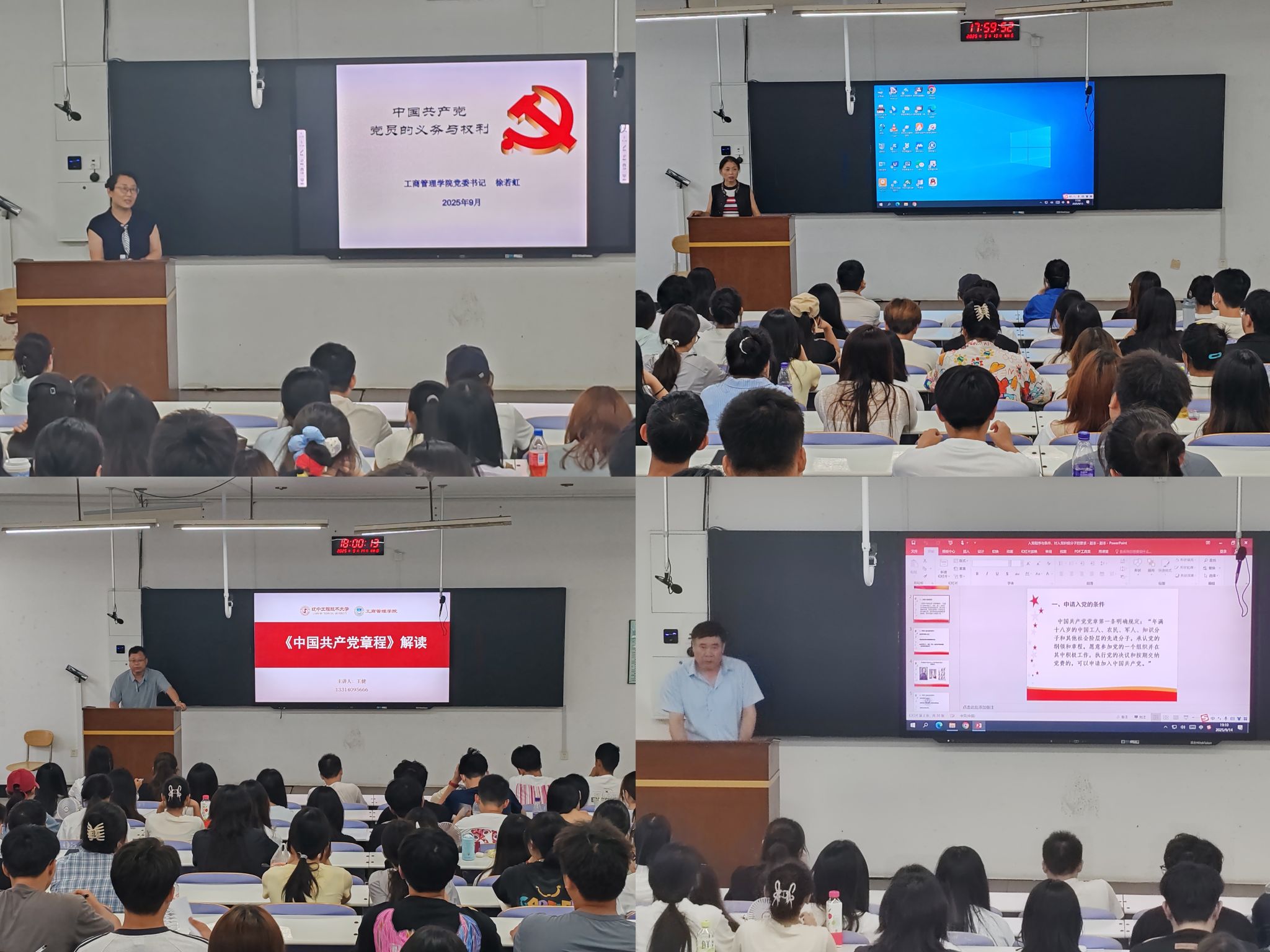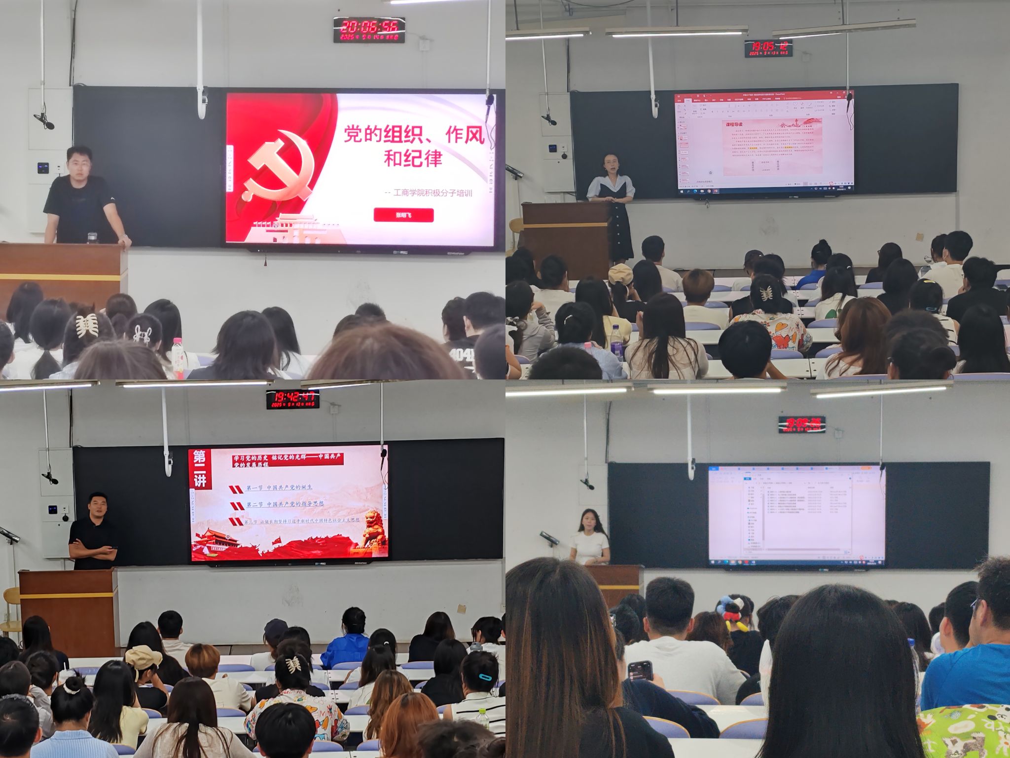 培训班第一讲由王永萍讲授《端正入党动机,争取早日成为合格的共产党员》;第二讲由学院党委书记徐若虹讲授《共产党员的权利和义务》;第三讲由学院党委副书记王健讲授《中国共产党章程》;第四讲由学院正处级组织员郑玉满讲授《共产党员条件、入党履行的程序和手续》;第五讲至第八讲由学院组织员及辅导员王子金、苏旭、张明飞、郝东旭为学生分别讲授《中国共产党的发展历程》《伟大建党精神》《党的组织原则、纪律和作风》以及《党的最终目标和现阶段任务》。