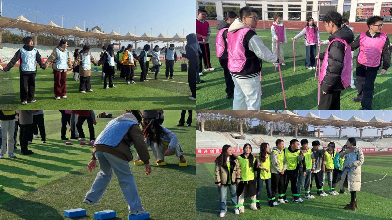 下午13:30,全体成员到校区运动场集合开展素质拓展训练。70名学生干部随机分为5支团队,在破冰环节中迅速融合,共同构思队名与口号,展现出良好的创造力与活力。活动设置“一圈到底”“不倒森林”“摸石过河”“巨人脚步”“多人多足”五项协作项目,通过这些活动有效提升了团队协作能力、加强了沟通效率与心理韧性,强化了学生干部的集体意识与进取精神。