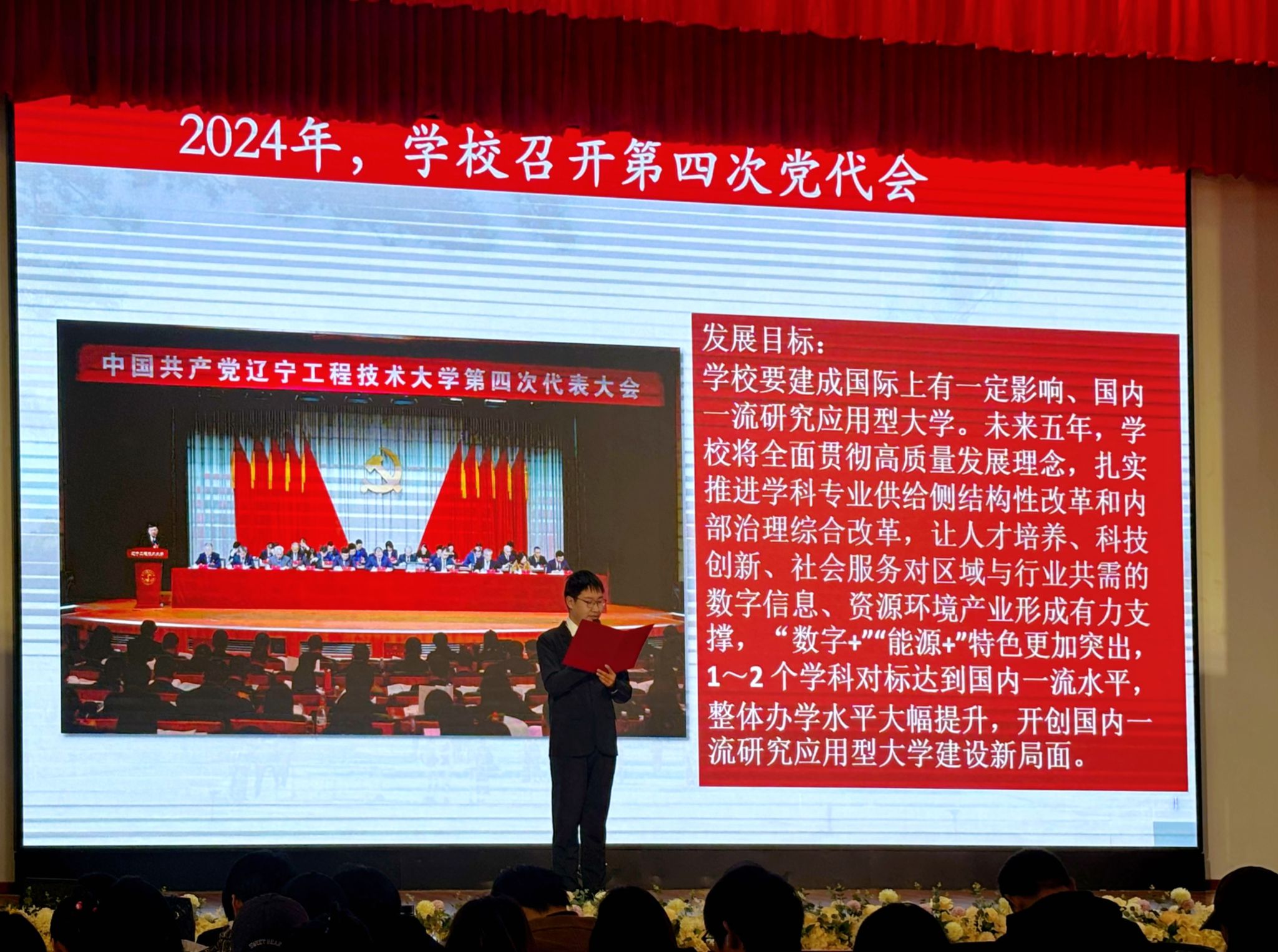 宣讲会上,五位宣讲团成员依次登台,以清晰的逻辑和真挚的情感,系统解读了太阳石精神的深厚内涵与时代价值。刘晓蕊同学从“大学精神”切入,溯源了太阳石精神与学校76年办学根基的紧密联系;耿韶青同学动情讲述了老一辈教育工作者克服困难、坚守讲台的感人事迹;张秋钥同学结合校史影像与办学数据,梳理了学校奋斗轨迹与育人硕果;薛惠文同学则通过海内外校友及在校学子的生动案例,展现了太阳石精神的代际传承;梁阿儒翰同学聚焦学校发展蓝图,激励学子将个人理想融入学校与国家发展,引发强烈共鸣。
