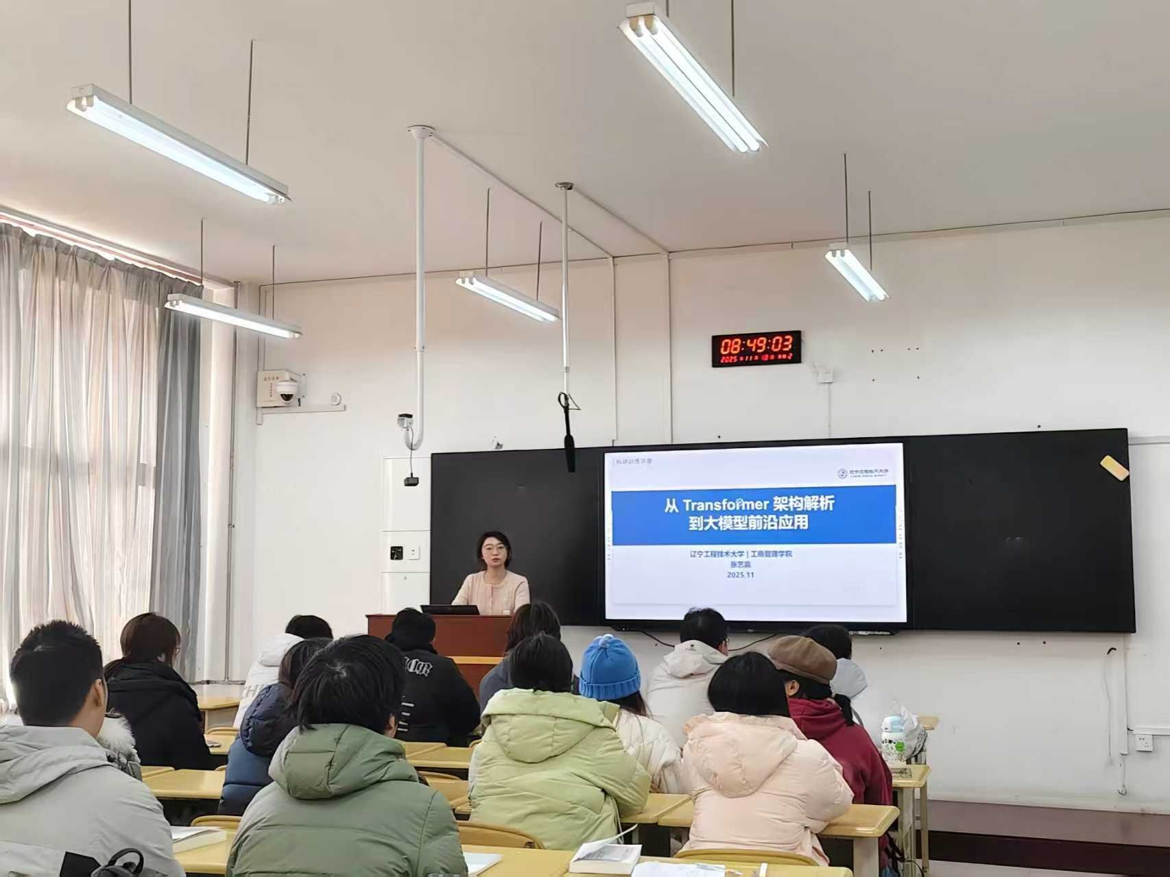 11月15日上午,工商学院在静远楼345教室举办了题为《从 Transformer 架构解析到大模型前沿应用》的课外科研训练讲座。本次讲座由张艺赢老师主讲,面向信息管理与信息系统系全体学生展开。