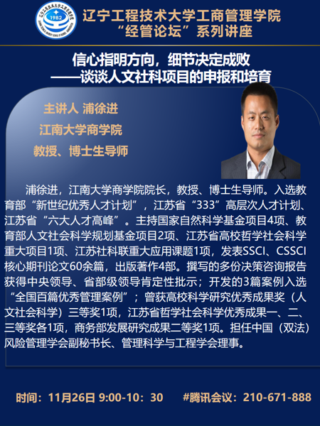 经管论坛——江南大学浦徐进教授学术报告