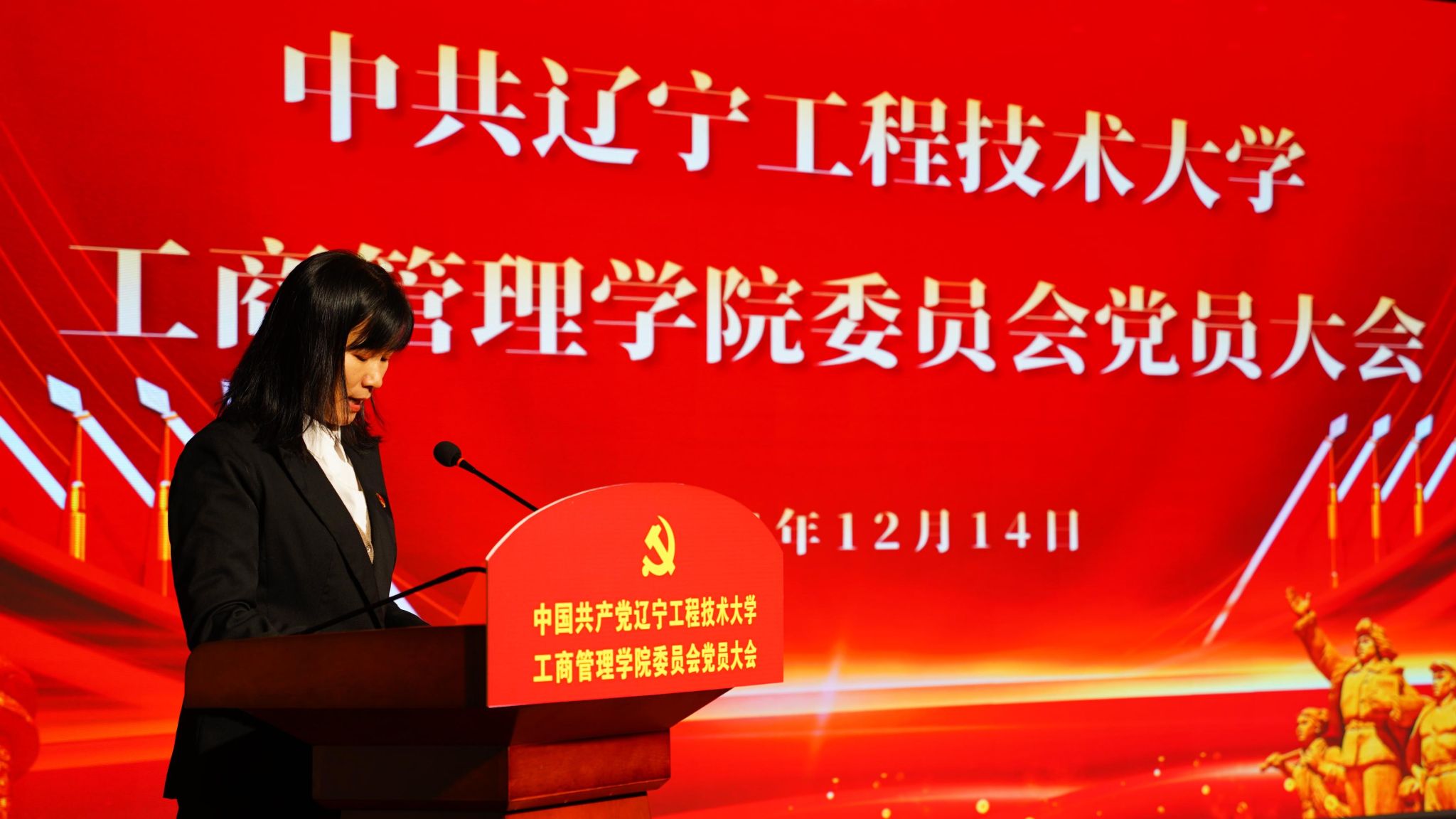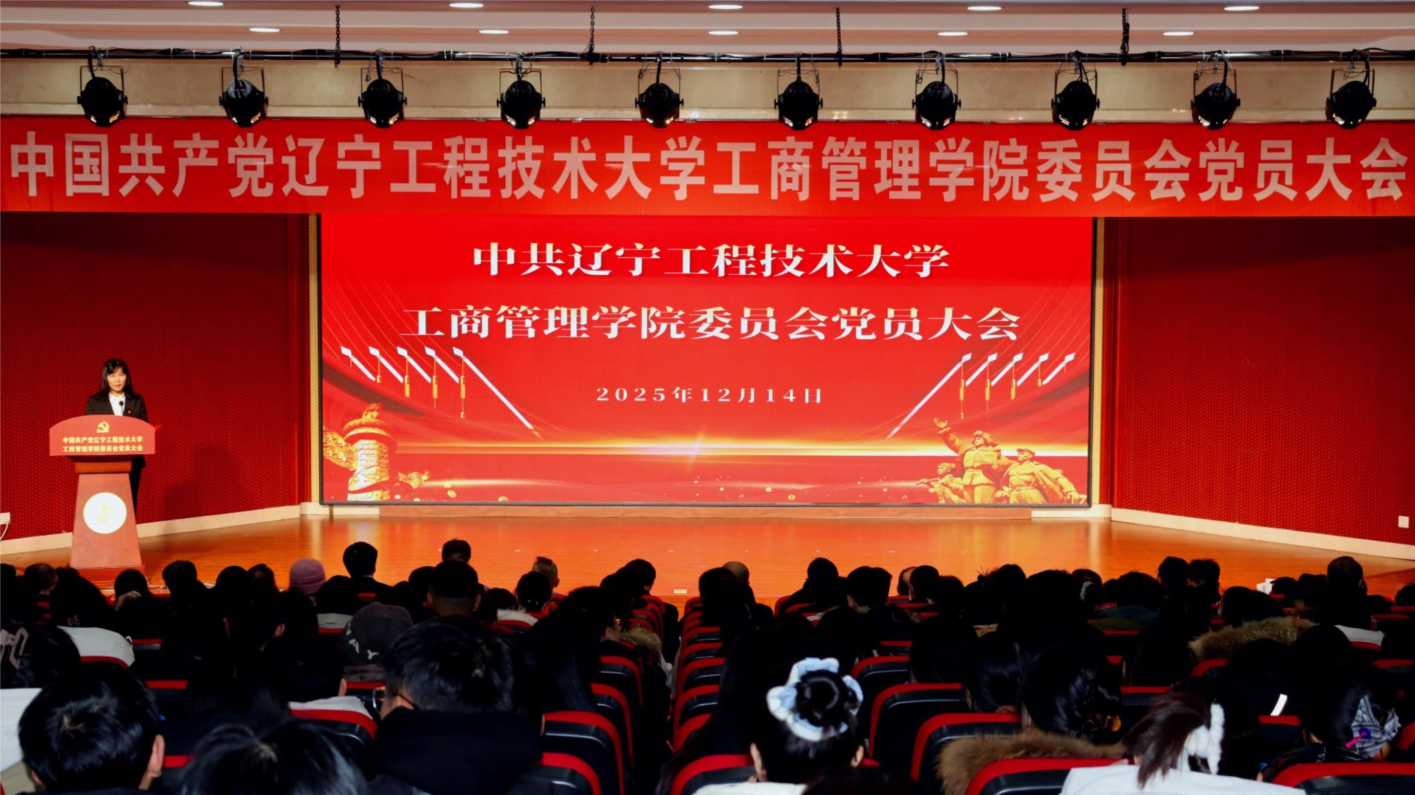 (通讯员 刘泽)2025年12月14日上午9:00,中共辽宁工程技术大学工商管理学院委员会党员大会在龙湾校园图书报告厅顺利召开,本次大会是新的工商管理学院成立后召开的首次全体党员大会,学院329名党员参会,部分民主党派代表列席会议,会议由副院长(主持工作)李晓梅主持。