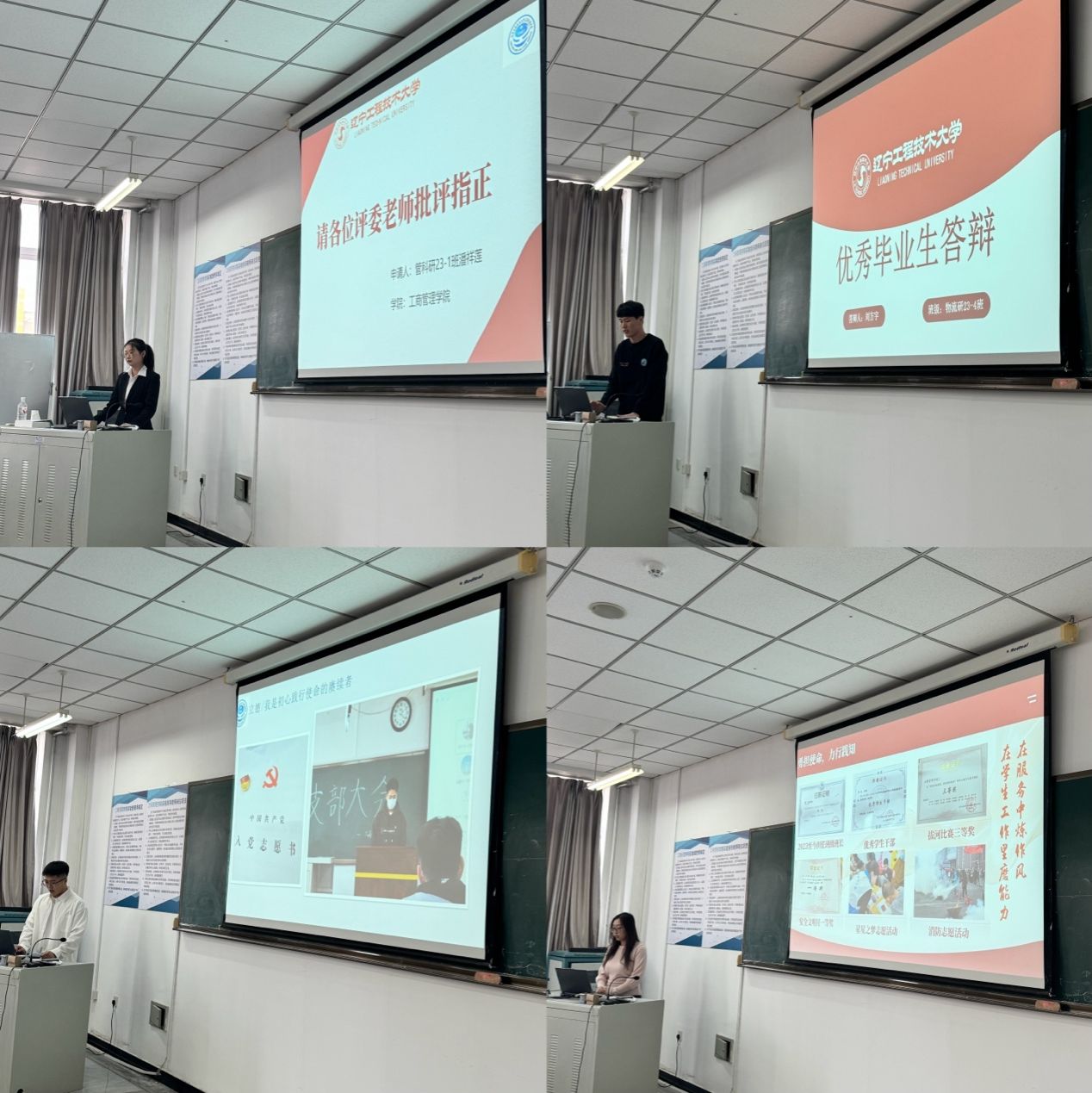 随后,经各班级推荐的2名博士生和32名硕士生候选人依次进行了答辩。他们从思想表现、学习成绩、社会实践、科研成果、志愿服务及创新创业等多个维度,全面汇报了研究生阶段的收获与体会。答辩过程中,参评同学们充分展示了工商学院研究生昂扬向上的精神风貌和扎实全面的综合素养,赢得评审老师们的一致好评。