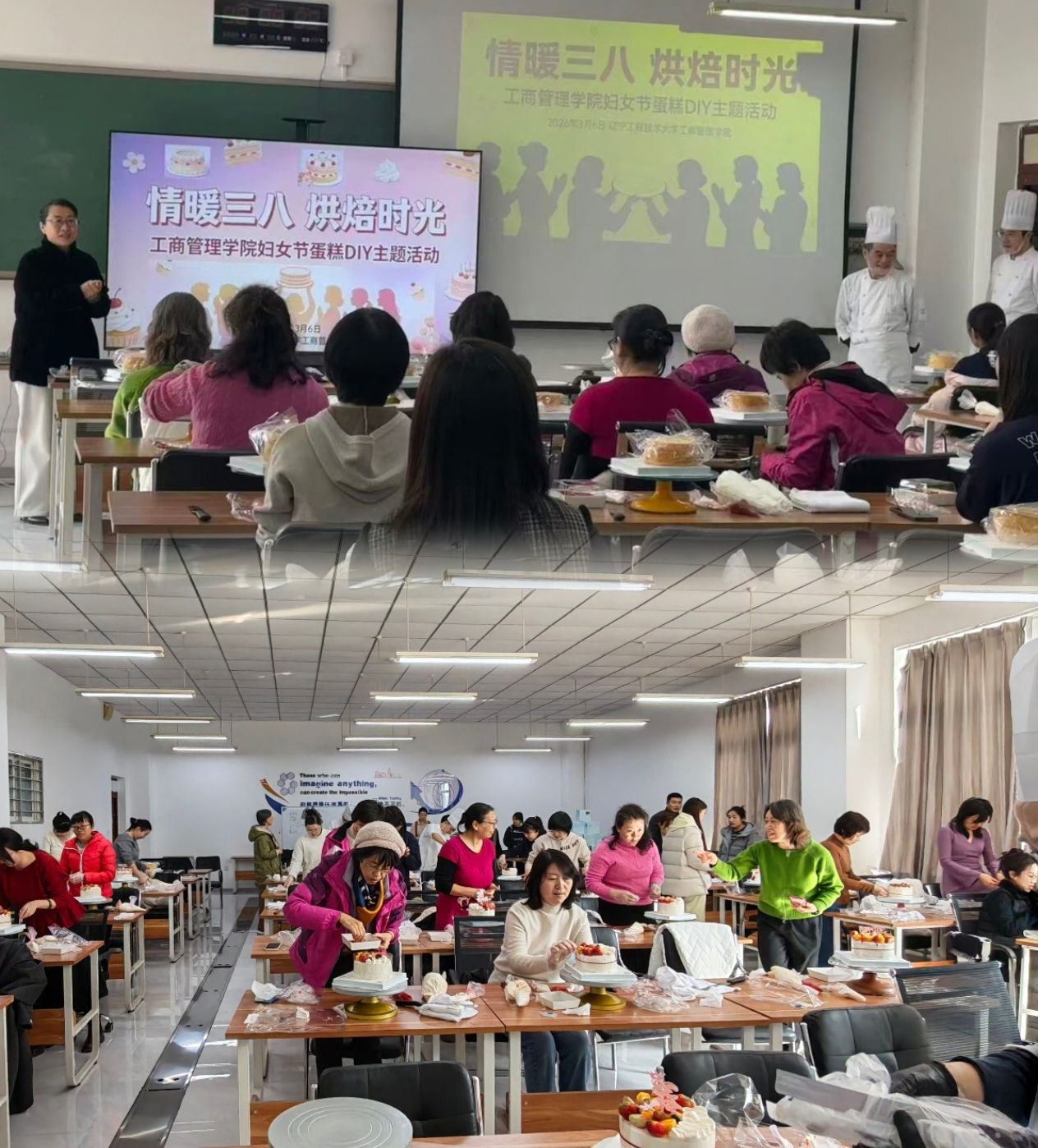 活动现场,专业烘焙师现场教学,女教职工们化身“烘焙达人”,抹奶油、裱花、装饰水果,制作出一个个精美的蛋糕。欢声笑语中,大家放松身心,感受亲手创作的乐趣。