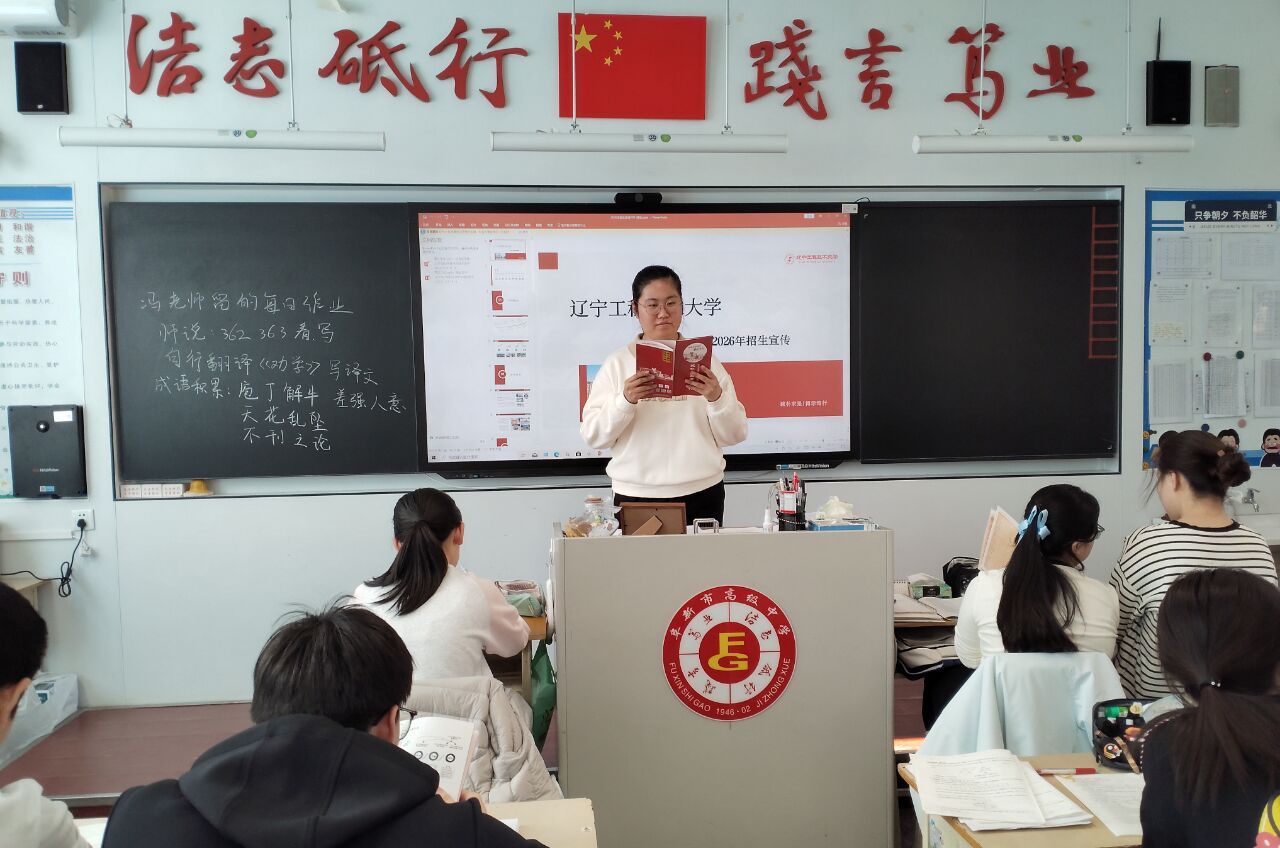寒假期间,陈芮同学重返母校开展招生宣讲活动。她结合自身在辽宁工程技术大学的求学经历,深入浅出地介绍了学校的办学特色、专业设置、校园生活及就业前景。现场同学就专业选择与志愿填报等具体问题进行了详细咨询。