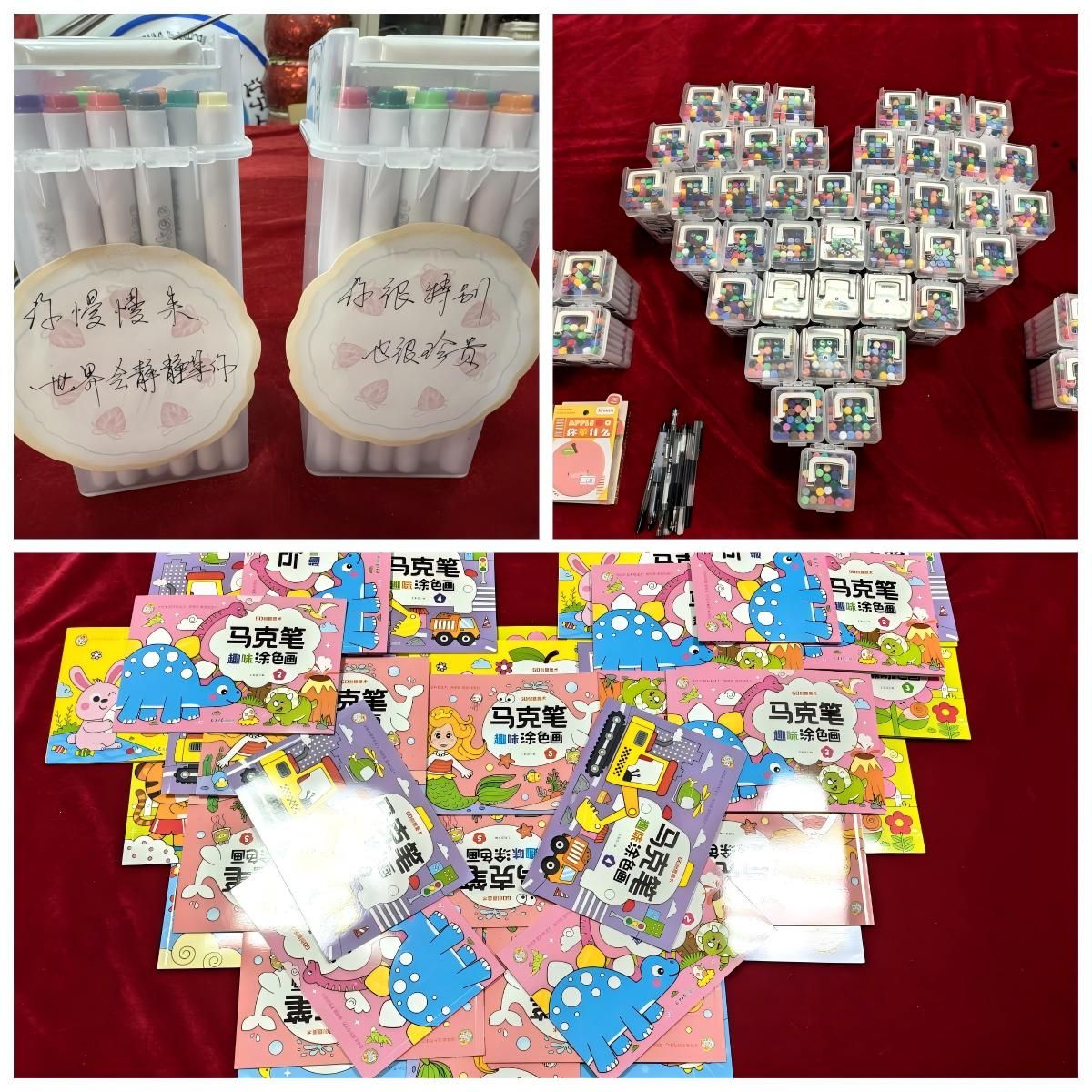 活动前期,志愿者们精心组织了募捐活动,利用筹集的善款为孩子们采购了绘本、画笔等物资。每一位志愿者还亲手写下了暖心话语,将真挚的祝福寄托在心愿便利贴上,字里行间流露出对孩子们的美好祝愿。